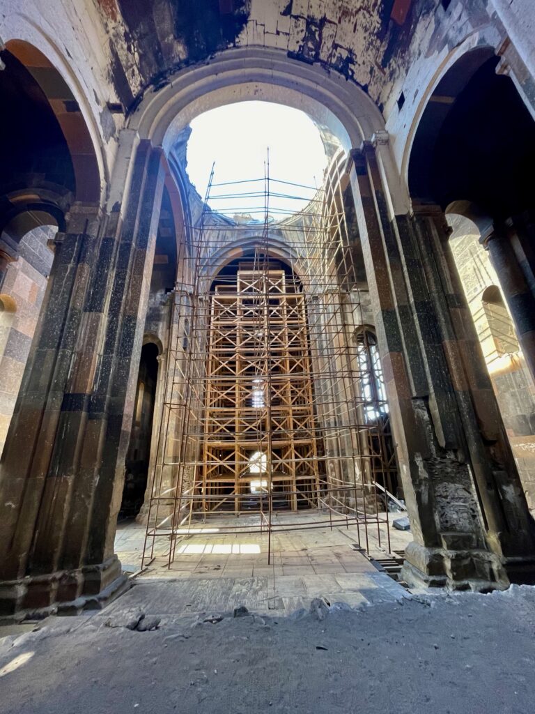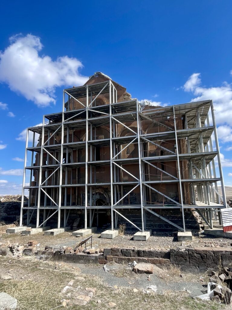 Earthquakes are still a serious threat for the remaining ruins of the old town. Some of them have been re-enforced with metal structures to avoid further damage, like the impressive Cathedral of Ani, built around 1000 years ago. The Christian Cathedral was converted into a mosque when the Seljuks conquered the city. Later is was converted back as an Armenian church. The Cathedral was damaged by an earthquake in 1319 and again in 1988.