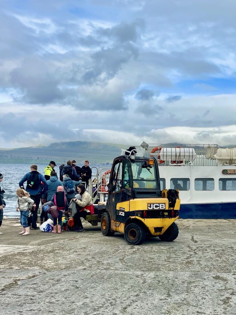We boarded the ferry together with a large Faroe family with small children who also went to the island to do camping.