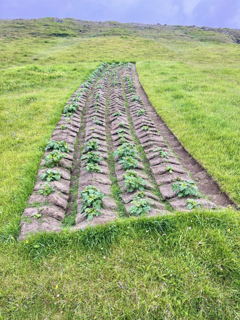 Most homes on the Faroe Islands are not really that fancy from the outside. They are more focused on being practical due to the harsh climate and availability of construction materials. Gardening is almost non-existing, not many trees and plants survive the hard salty winds on the islands. Still we see that some islanders make it their life mission, to grow and nature some small sturdy trees and scrubs. And houses with such gardens are eye catching. Also interesting to see are the small vegetable gardens, where they just put squares of grass sods up side down and plant seeds in it, to grow the vegetables.