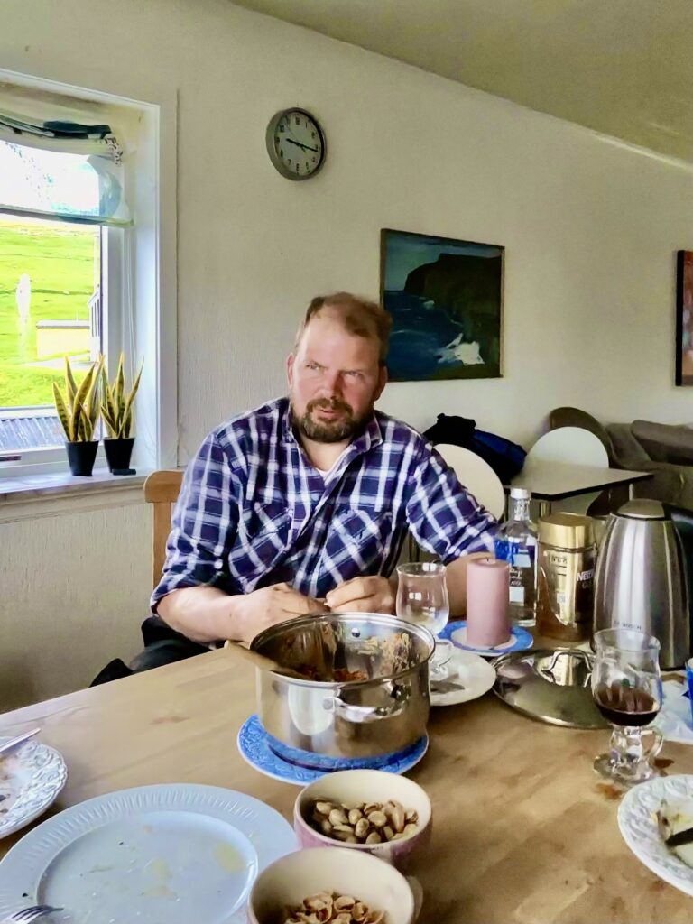The mayor was quite man, a man of few words. He was around his mid fifties I think, and drives around the little town with two roads, on his ATV with his two Scottish border collies in the back. Over time he has bought a lot of land on the island and he is the biggest sheep owner. Apparently he lives mostly from the trade of his wool and sheep meat. He is a man who has gone through some rough times on one of the larger islands, and decided to get away from it all, and find peace and quiet on this small island, where hardly tourists come (and I think he would like to keep it that way). As sudden as he walked in, as sudden he left the party.